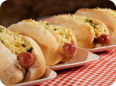 Escolha entre nossas opções de cachorros-quentes e acompanhamentos.